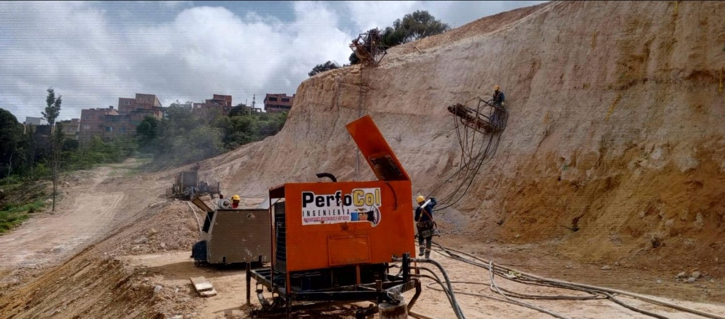 Los *anclajes activos* generalmente se construyen con cable torón (1/2” o 5/8”) en profundidades superiores a 12m, con zona de bulbo inyectada a presión y cargas de tensionamiento superiores a 30ton. Sus principales aplicaciones incluyen estabilización de deslizamientos de alto volumen, muros y pantallas de contención, estabilización de excavaciones, estabilización de taludes en presas y control de levantamiento o falla de fondo.
