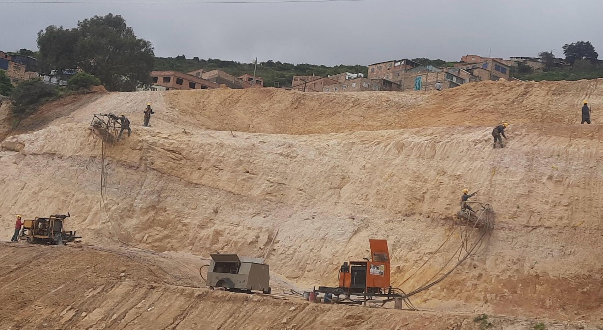Los *anclajes activos* generalmente se construyen con cable torón (1/2” o 5/8”) en profundidades superiores a 12m, con zona de bulbo inyectada a presión y cargas de tensionamiento superiores a 30ton. Sus principales aplicaciones incluyen estabilización de deslizamientos de alto volumen, muros y pantallas de contención, estabilización de excavaciones, estabilización de taludes en presas y control de levantamiento o falla de fondo.
